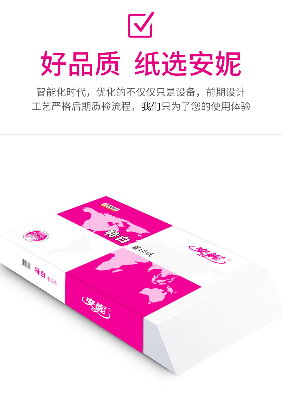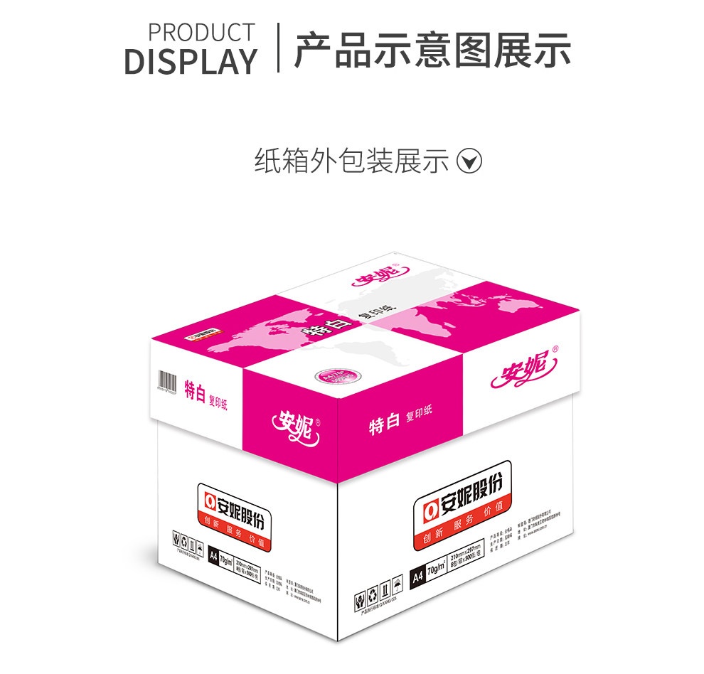 商品名称:安妮(ANNE)A3 70g 复印纸 500张/包 4包/箱 单包装