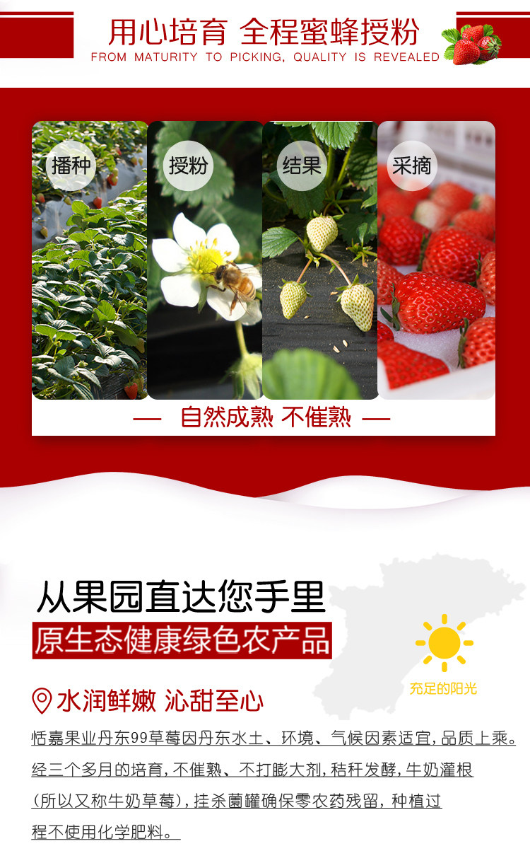 商品名称:丹东99草莓3斤红颜奶油东港九九大草梅新鲜采摘