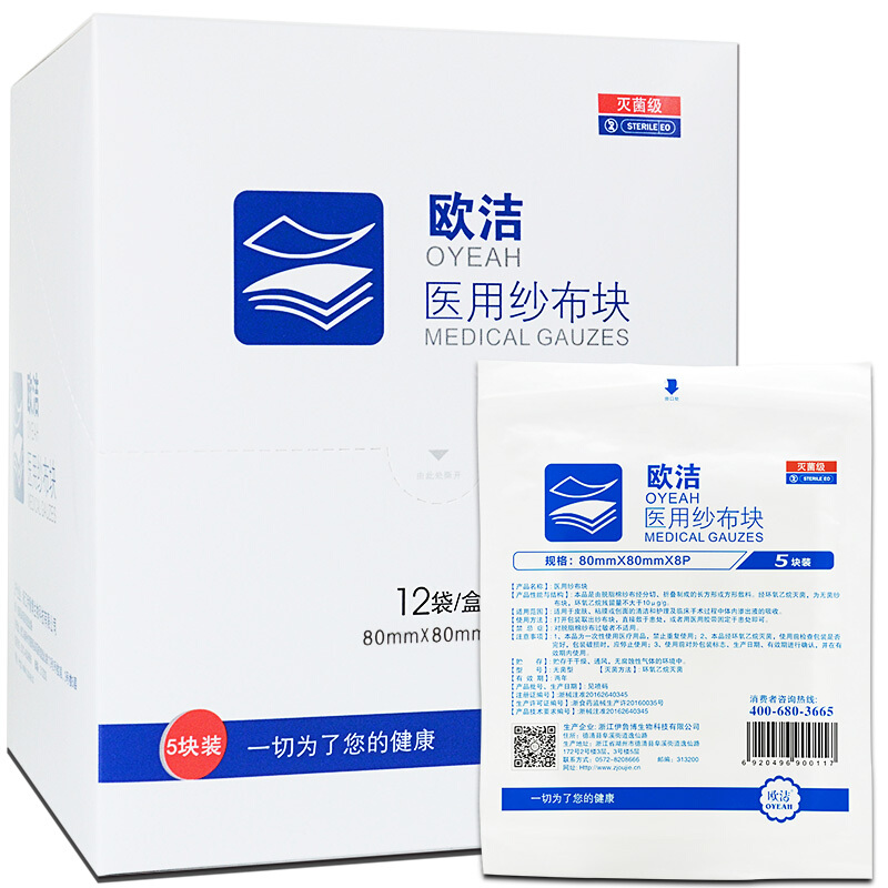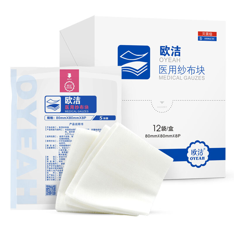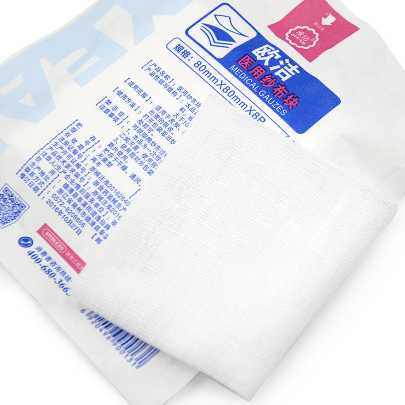 商品名称:欧洁 医用纱布块8*8cm 12袋/盒 一次性无菌纱布片