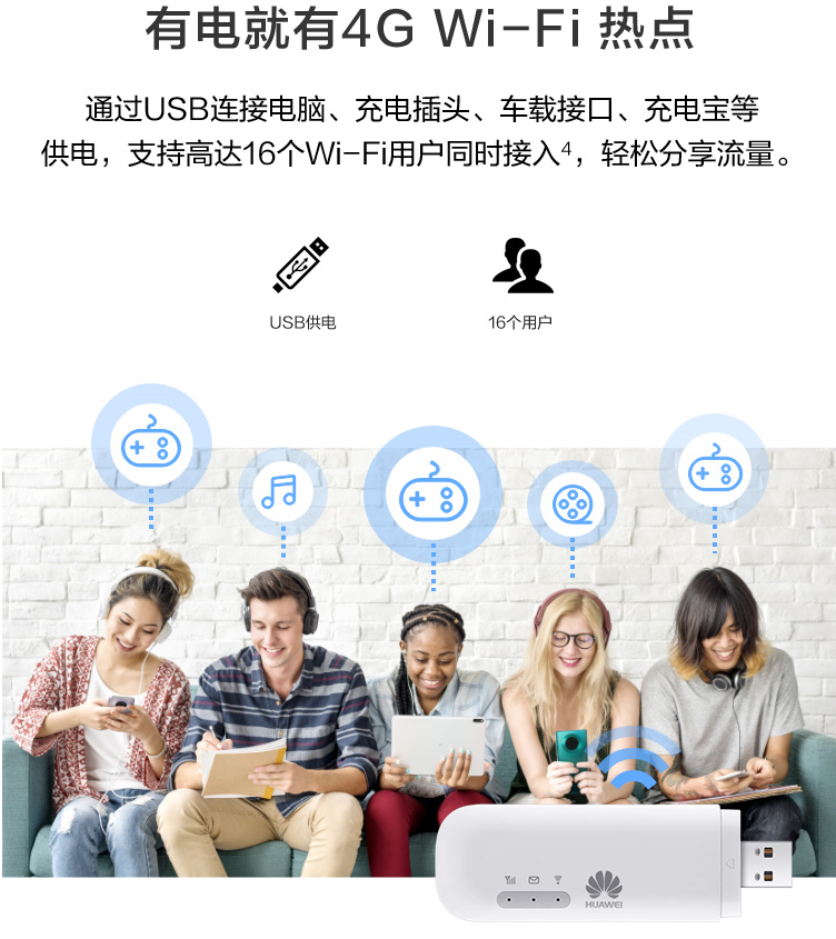 华为 HUAWEI 随行wifi2mini三网移动电信联通4G无线上网卡终端E8372物联网卡套装版本