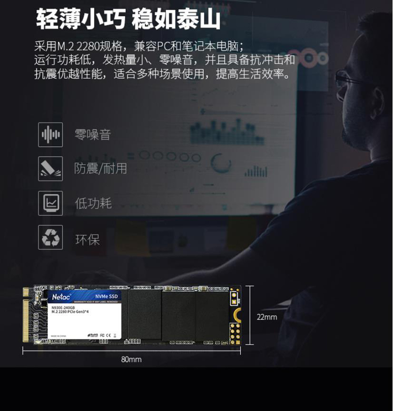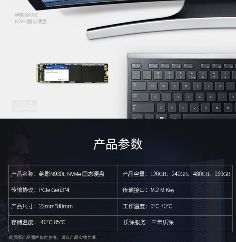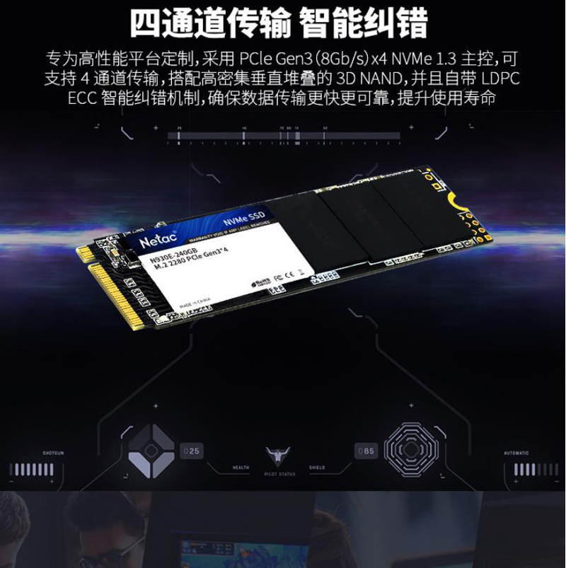 商品名称:☆朗科 NETAC 绝影系列 N930E 240GB M.2 NVME固态硬盘PCIE GNE3*4 2280