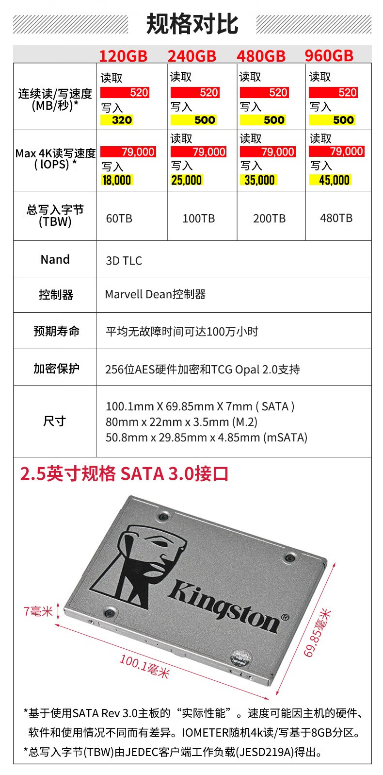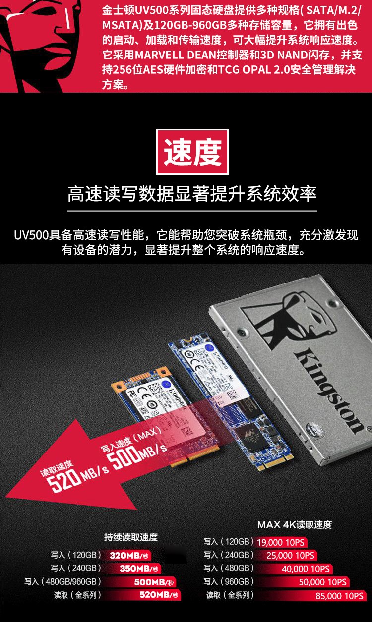 商品名称:金士顿 KINGSTON UV500系列 960G SATA3 固态硬盘