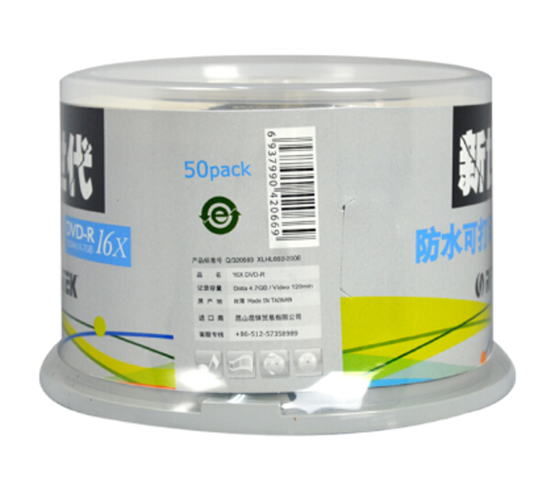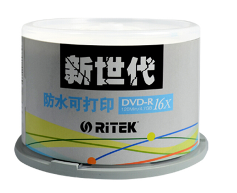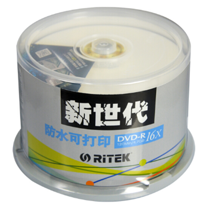 商品名称:☆铼德 RITEK DVD-R光盘/刻录盘16速4.7G新世代防水可打印桶装50片