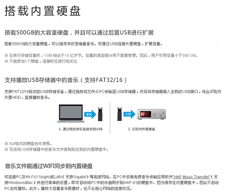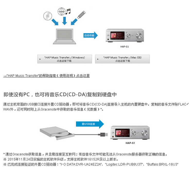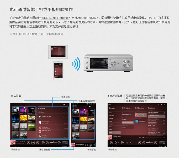 索尼 SONY HAP-S1硬盘音频播放器USB播放WIFI连接银色