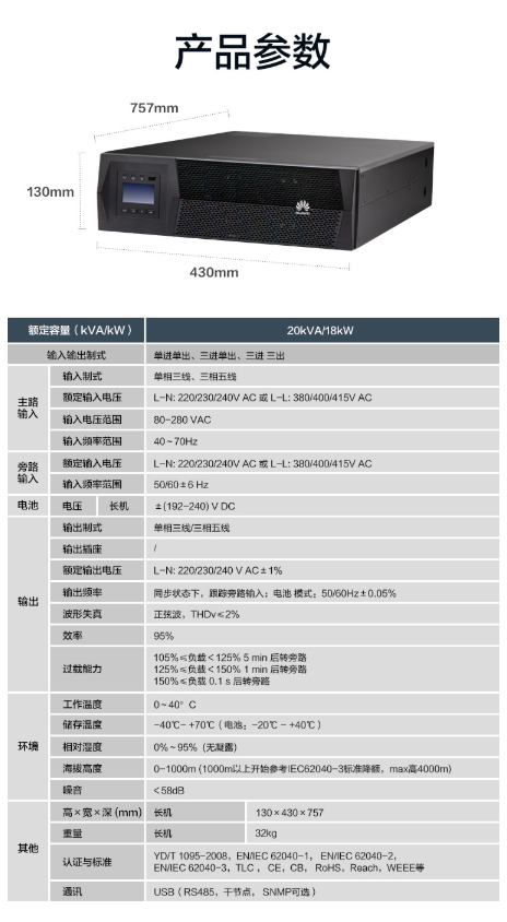 型号:HUAWEI UPS2000-G-20KRTL