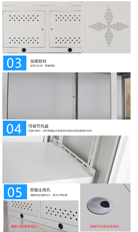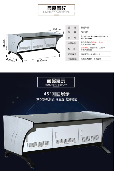 商品名称:慕胜华腾 G8-303 加厚款 三联监控台 银色