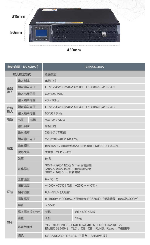 商品名称:华为 HUAWEI UPS2000-G-6KRTL 不间断电源