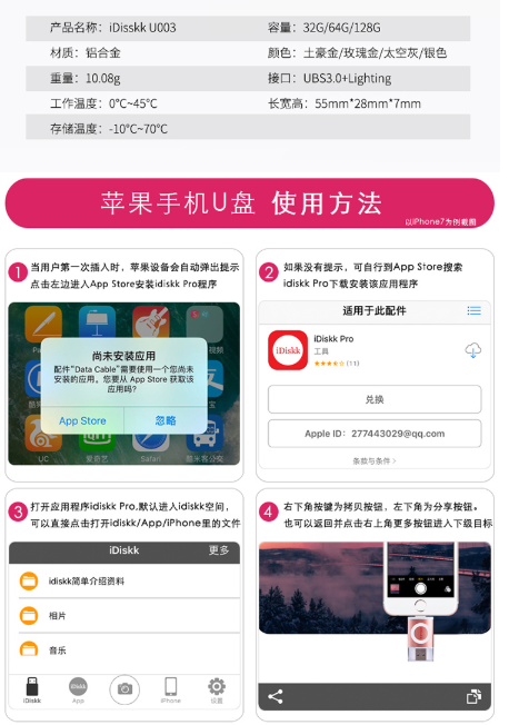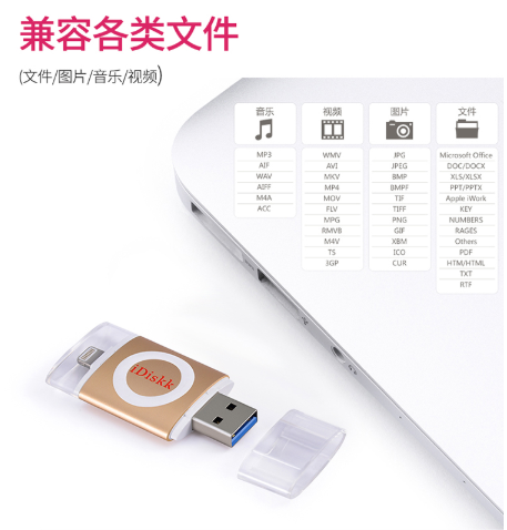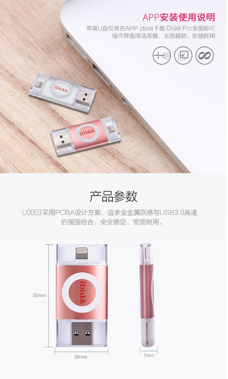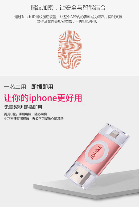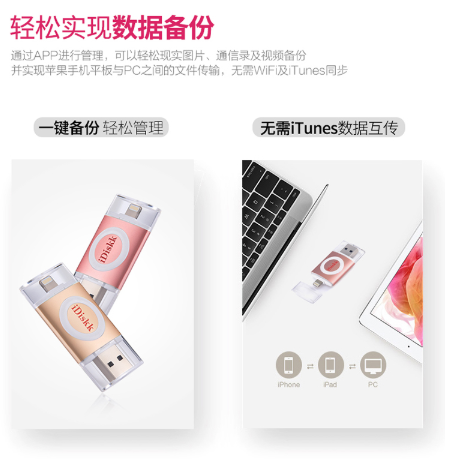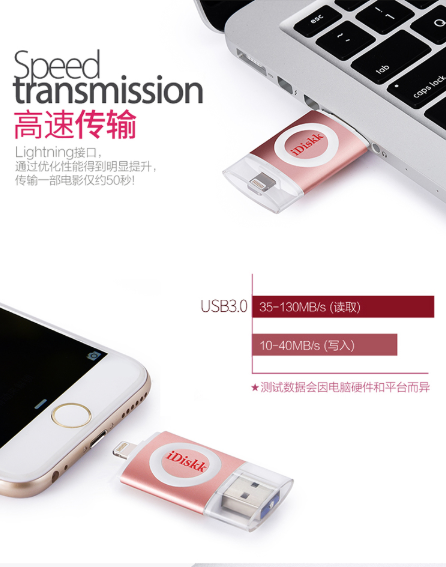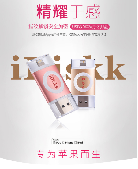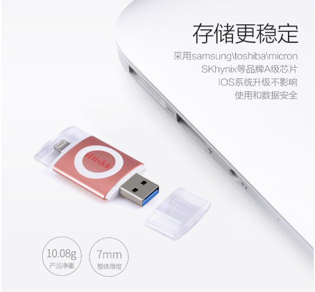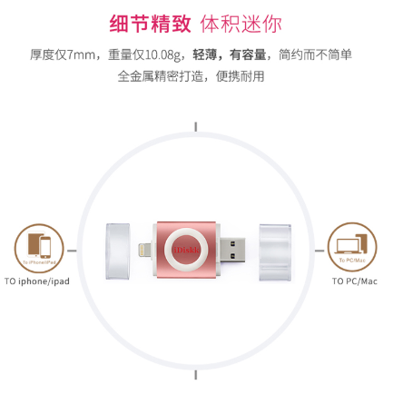 商品名称:IDISK KU003苹果手机U盘128G苹果官方MFI认证IPHONE/IPAD手机电脑两用U盘玫瑰金