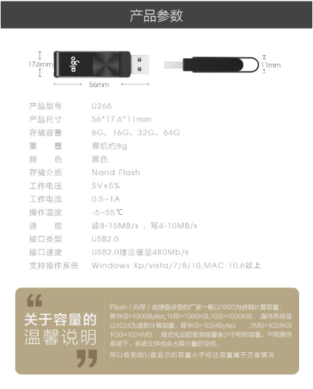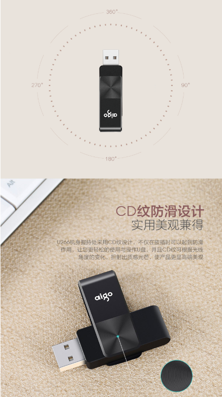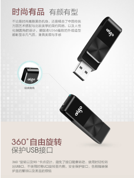 商品名称:爱国者 AIGO U266 U盘 16G USB2.0 黑色