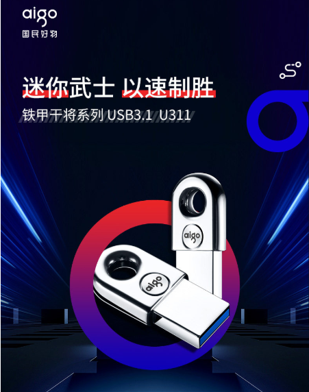 商品名称:爱国者 AIGO 飞箭武士 U311 64GB USB3.1 读速100MB/S 高速读写U盘 银色