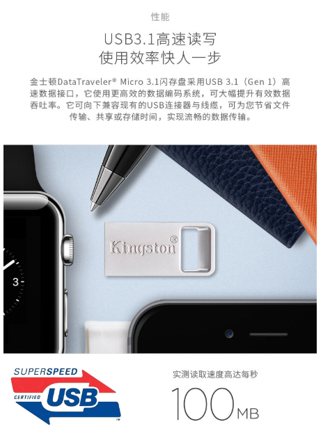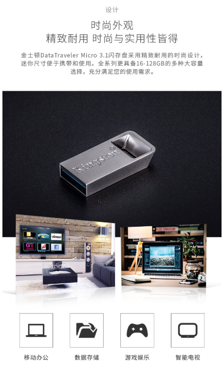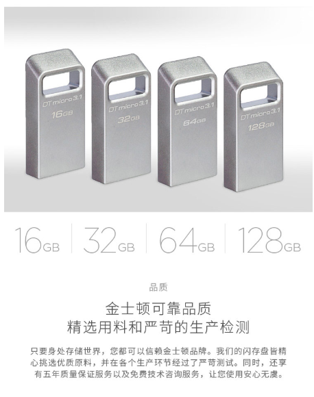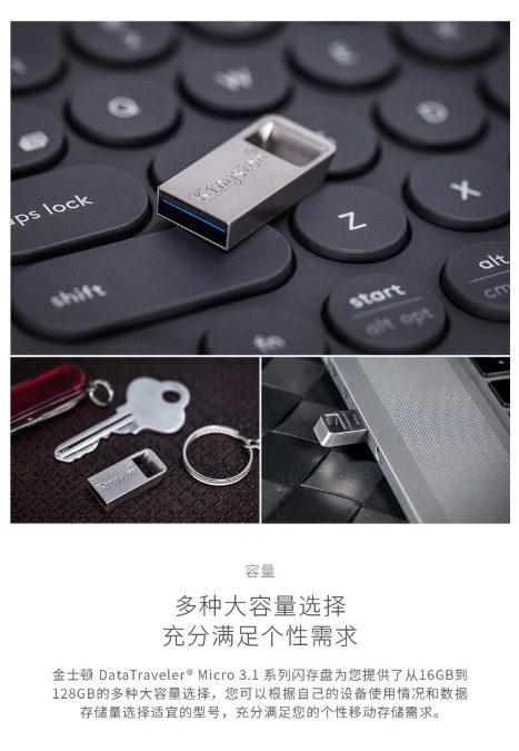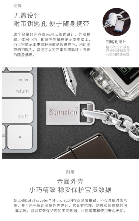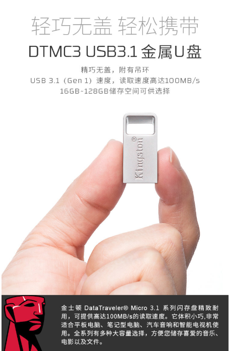 商品名称:金士顿 Kingston 读速100MB/s DTMC3 64GB USB3.1 金属U盘 银色 便携环扣
