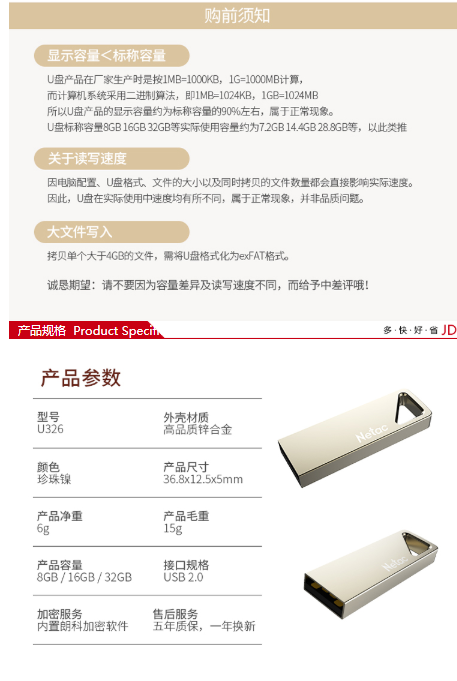 商品名称:朗科 NETAC U326 U盘 16GB USB2.0 珍珠镍色