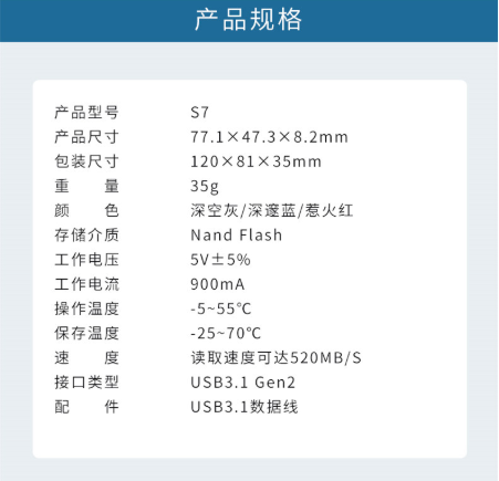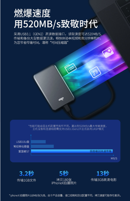商品名称:爱国者 AIGO S7 2TB USB 3.1 移动固态(PSSD)硬盘