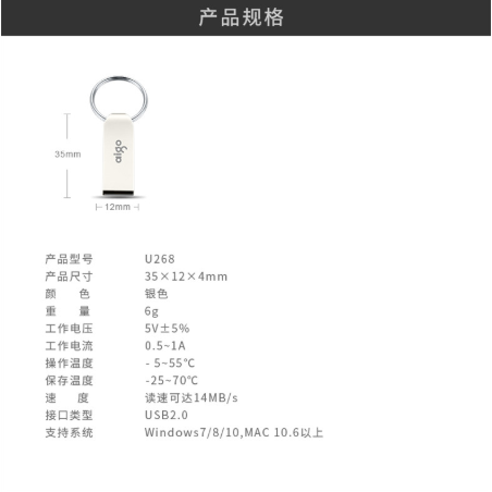 商品名称:爱国者 AIGO U268迷你款 U盘 16GB USB2.0 银色