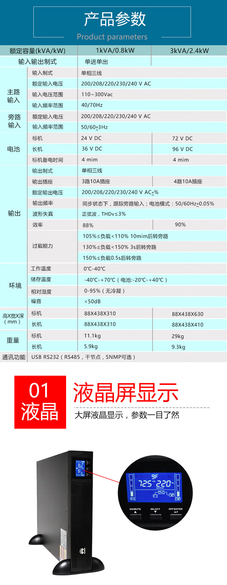商品名称:华为 HUAWEI UPS2000-G-3KRTL 不间断电源