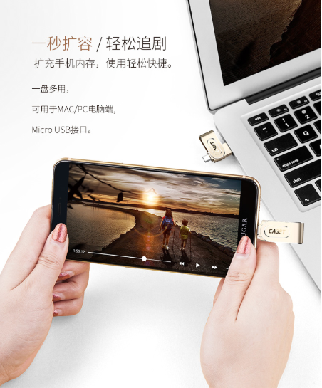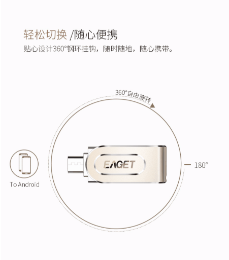 忆捷 EAGET V88手机U盘32GMICROUSB和USB3.0双接口金属防水旋转式OTG电脑通用
