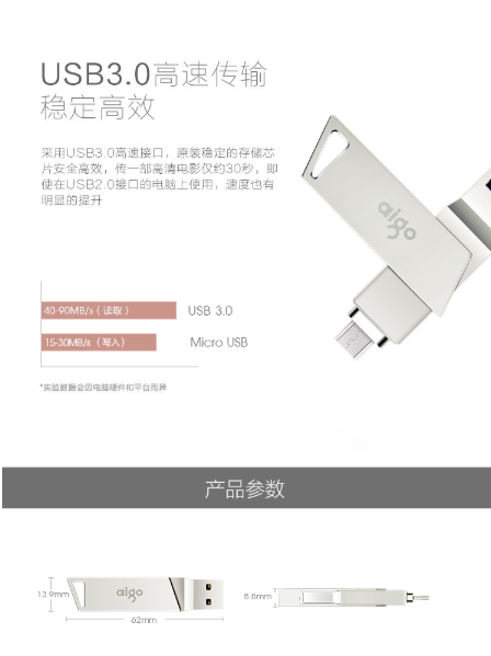 商品名称:爱国者 AIGO OTG精耀系列 U385 手机U盘 128G USB3.0