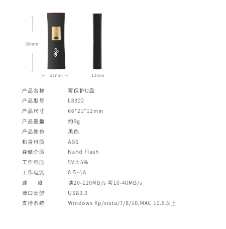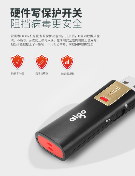 商品名称:爱国者 AIGO L8302 U盘 128GB USB3.0 黑色