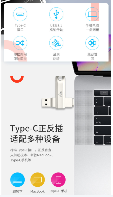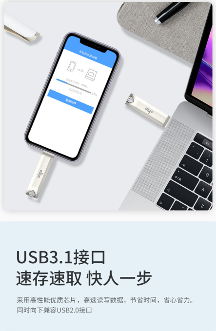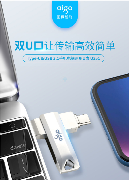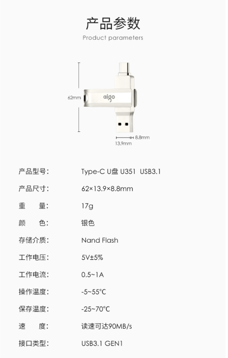 商品名称:爱国者 AIGO U351高速读写款 手机U盘 128GB TYPE-C USB3.1 银色