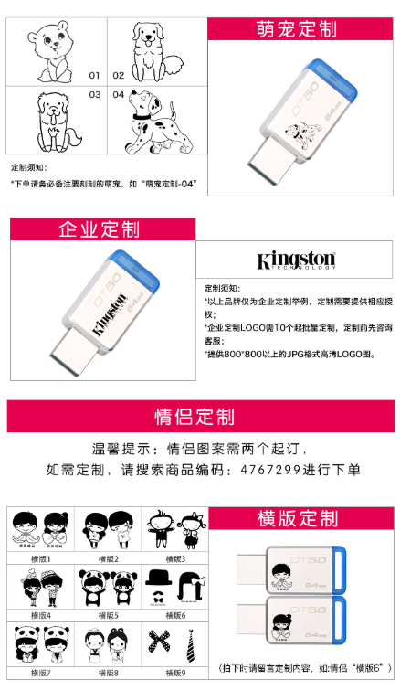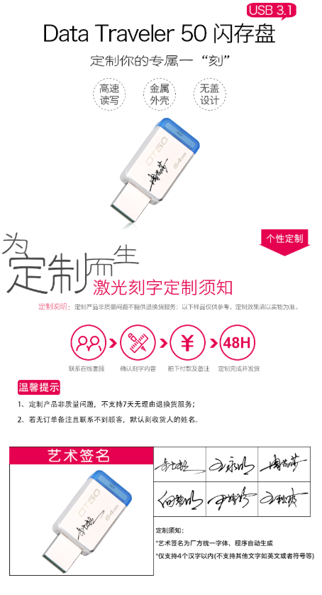 商品名称:金士顿 KINGSTON USB3.1DT5064GBU盘个性化自定义定制金属车载U盘