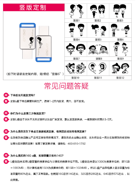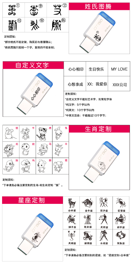 金士顿 u盘车载电脑礼品办公婚庆优盘 定制logo (旋转USB2.0蓝色)4G 单位:个
