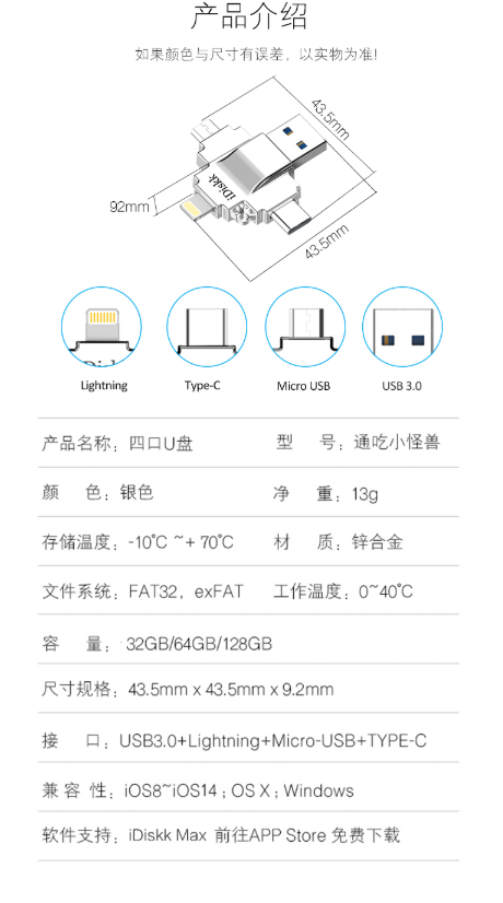 商品名称:IDISKK 32GB 银色 四合一 通用版 苹果U盘