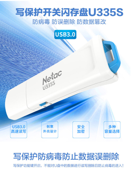 商品名称:朗科 NETAC U335S 32GB USB3.0写保护开关系列U盘 白色