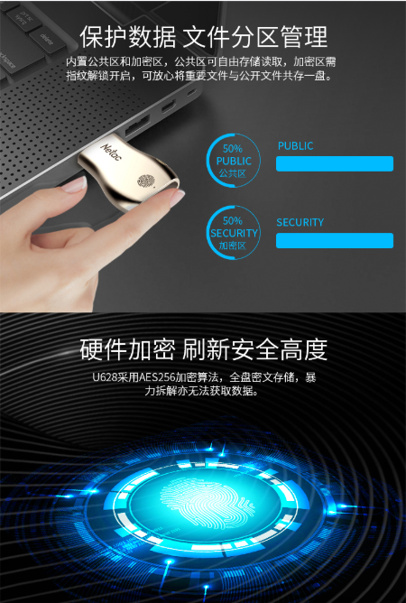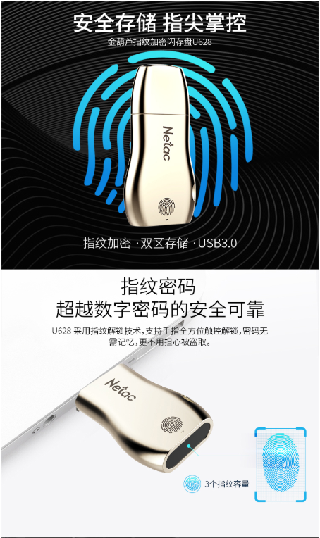 商品名称:朗科 NETAC U628 USB3.0 64GB 指纹加密金属U盘
