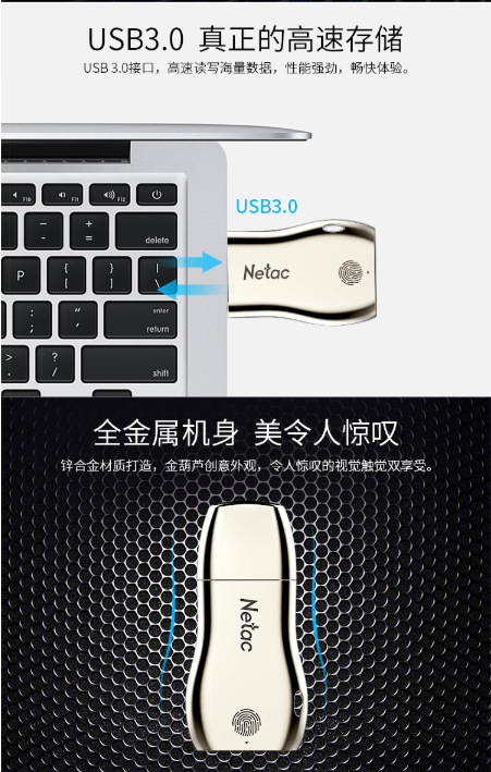 朗科 NETAC U628 USB3.0 64GB 指纹加密金属U盘
