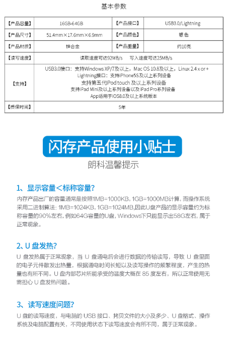 商品名称:朗科 NETAC U651 U盘 32GB USB3.0 皓月银
