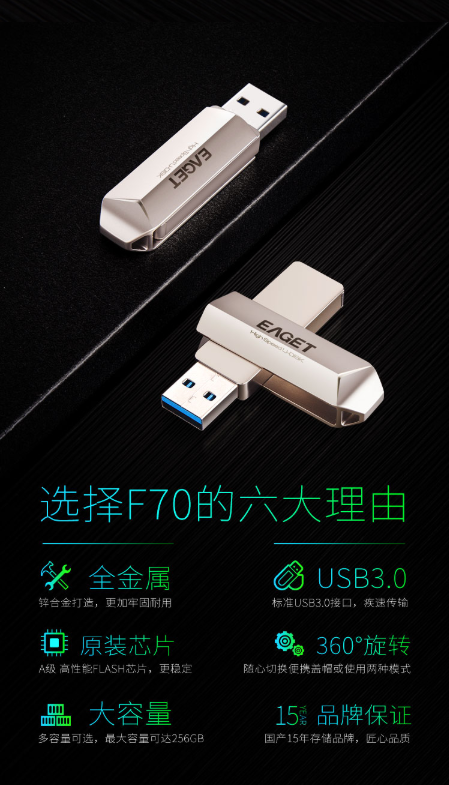 型号: EAGET 64GB USB3.0 U盘 F70