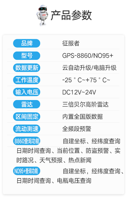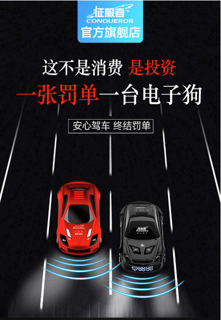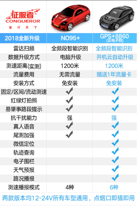 商品名称:征服者 CONOUEROR NO95+车模电子狗雷达测速安全预警固定流动一体机