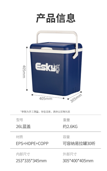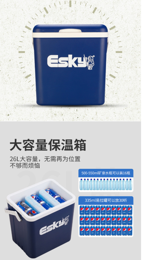 型号: ESKY 带盖保温/冷藏箱(赠8冰袋) 26L