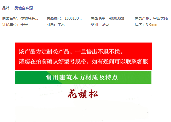 商品名称:桑墟金森源 建筑木方 300×48×7 225根/件 22件整车装