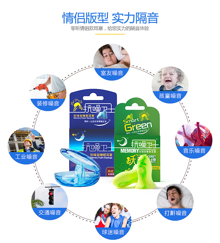 商品名称:零听 抗噪卫士 耳塞 经典2枚+纤绿2枚套装