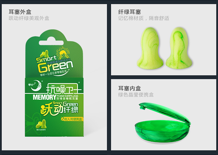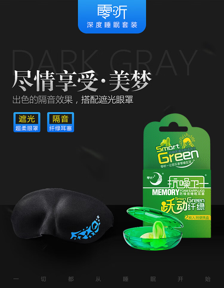 商品名称:零听 抗噪卫士 耳塞眼罩三件套(跃动纤绿2枚+眼罩超柔款1只装 黑色)