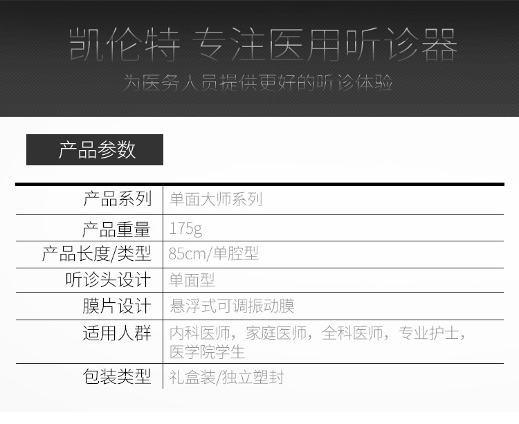 商品名称:凯伦特 CARENT DT-TZQ-A 单面大师款 听诊器 悬浮振动膜