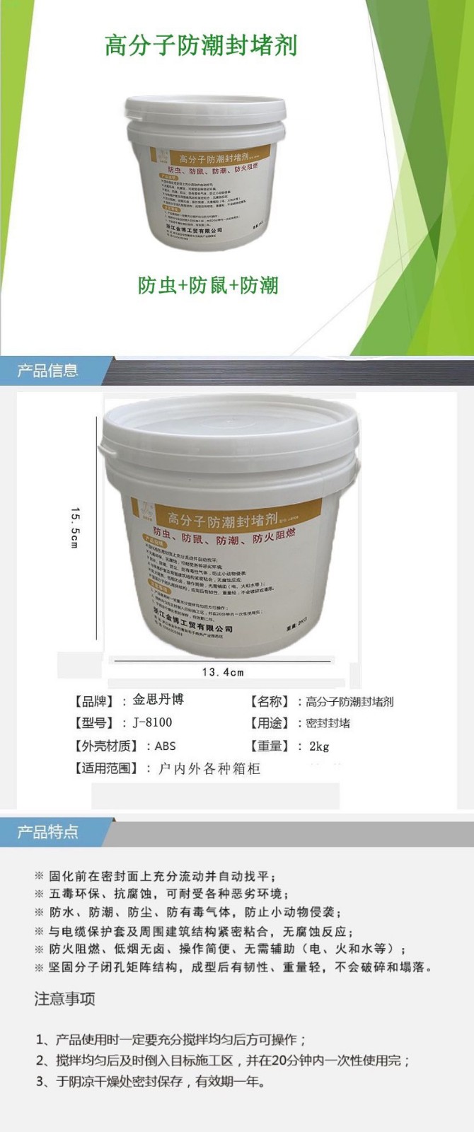 商品名称:金思丹博 ZX001J-8100高分子防潮封堵剂灰色2kg(计价单位:桶)