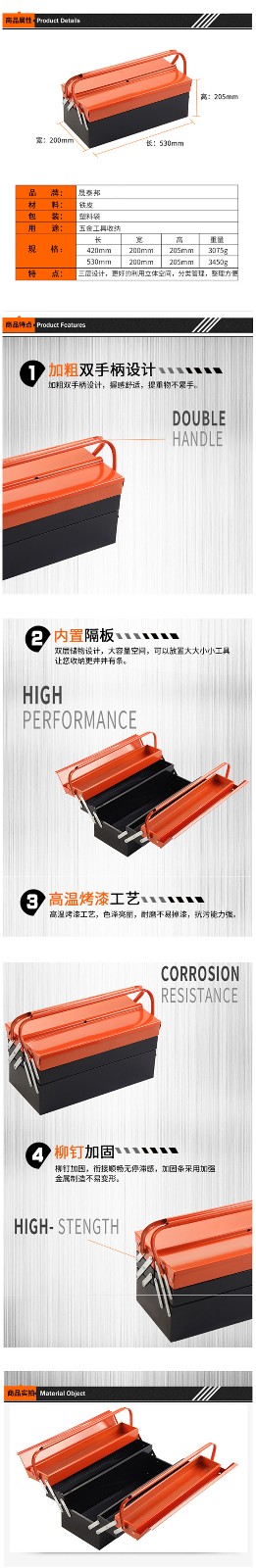 商品名称:晟泰邦 STB0324 金属工具箱长530mm*宽200mm*高205mm(单位:个)