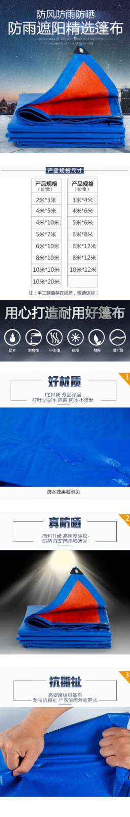 商品名称:(防风防汛)晟泰邦 STB0292加厚彩条布防雨布PE塑料布 3米*4米 (单位:张)