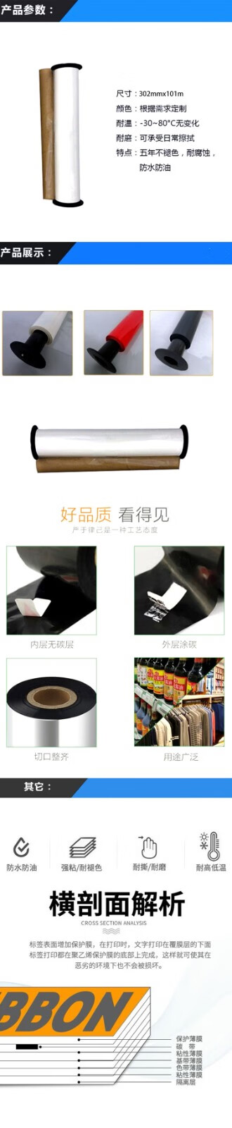 商品名称:晟泰邦 STB0276 色带 302mmx101m 黑色 (单位:卷)