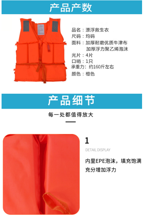 商品名称:金思丹博JSDB-025成人救生衣 浮力背心(单位:件)