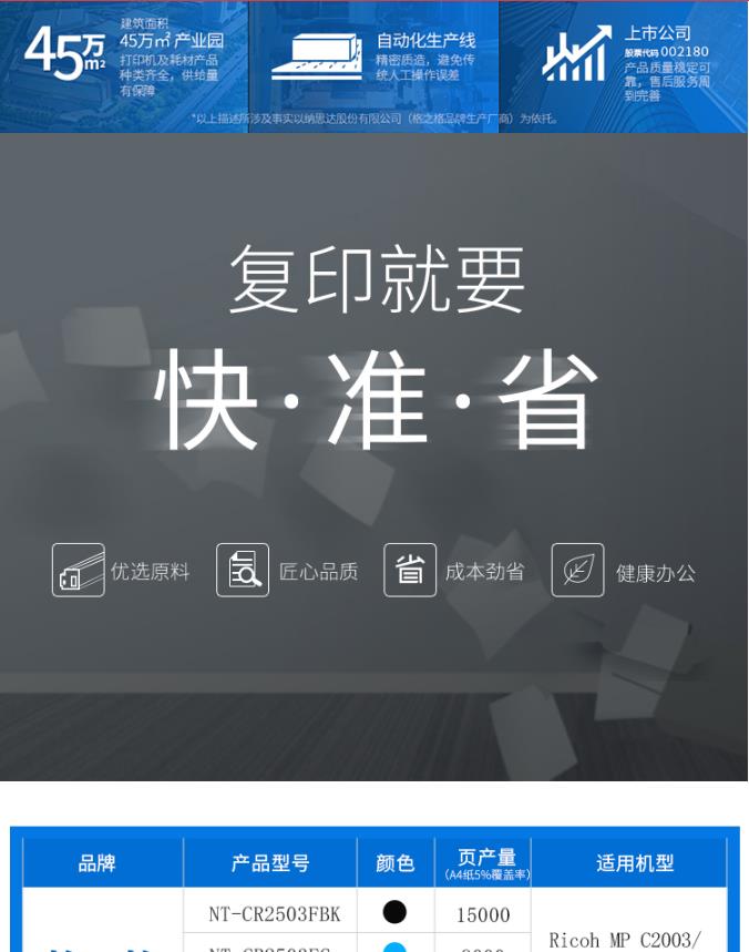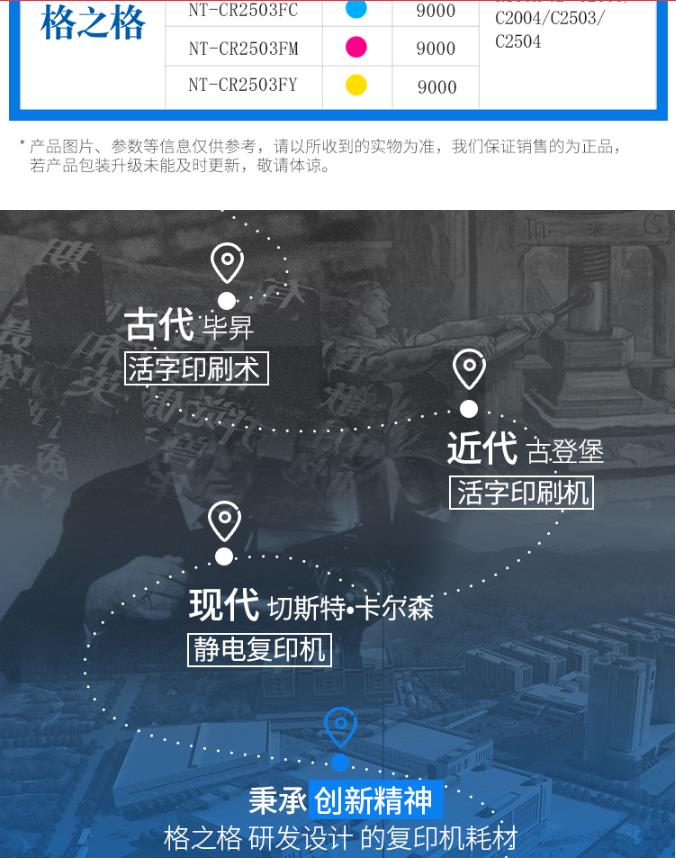 商品名称:格之格NT-CR2503FY复印机粉盒MP C2503HC精品黄色适用理光C2003 C2004 C2503 C2504系列黄色普通装(计价单位:支)