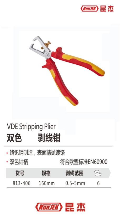 商品名称:昆杰813-406双色剥线钳6英寸(计价单位:个)