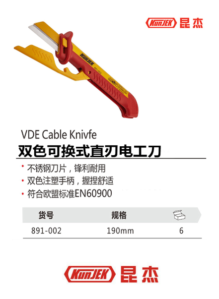 商品名称:昆杰891-002双色可换式电工刀58×155mm(计价单位:个)