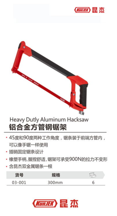 昆杰03-001铝合金方管钢锯架(带锯条)300mm(计价单位:把)