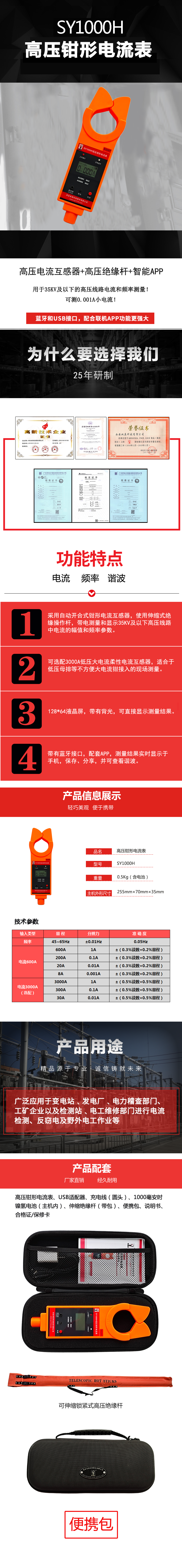 商品名称:双英(ZX)SY1000H双英钳形电流表(计价单位:个)