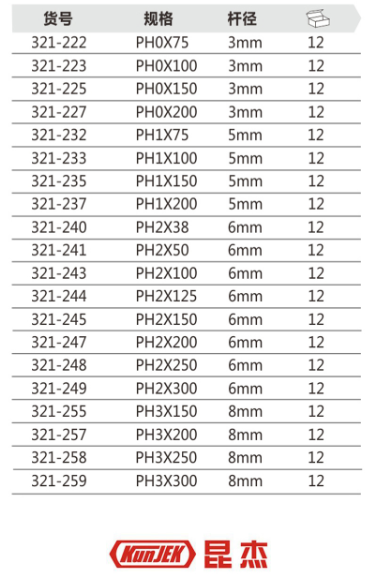 昆杰321-222斯迈德橡一字塑柄螺丝批PH0×75mm(计价单位:个)