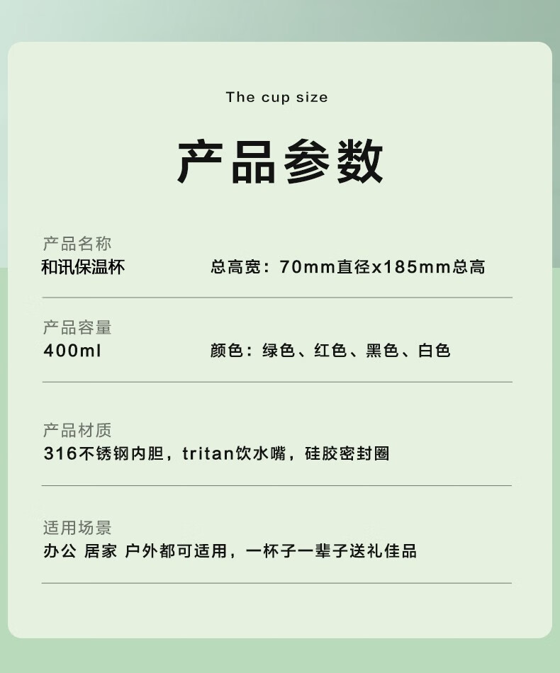 商品名称:和讯科技ZX072名驰保温杯白色400ml(计价单位:个)