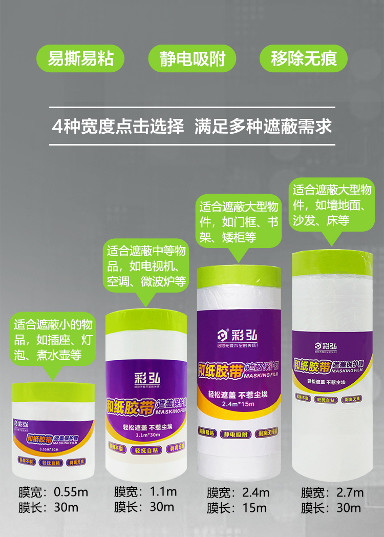 商品名称:彩弘 1.1M*30M 地面保护膜装修美纹纸和纸遮盖膜油漆涂料乳胶漆墙面汽车家具保护膜G152